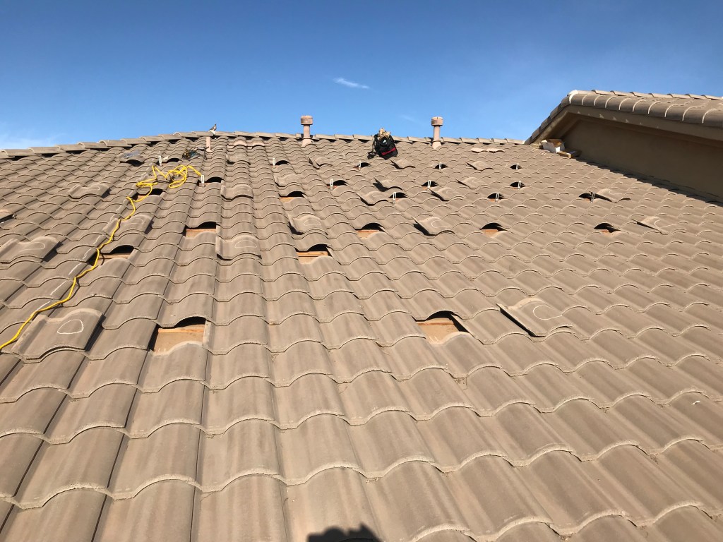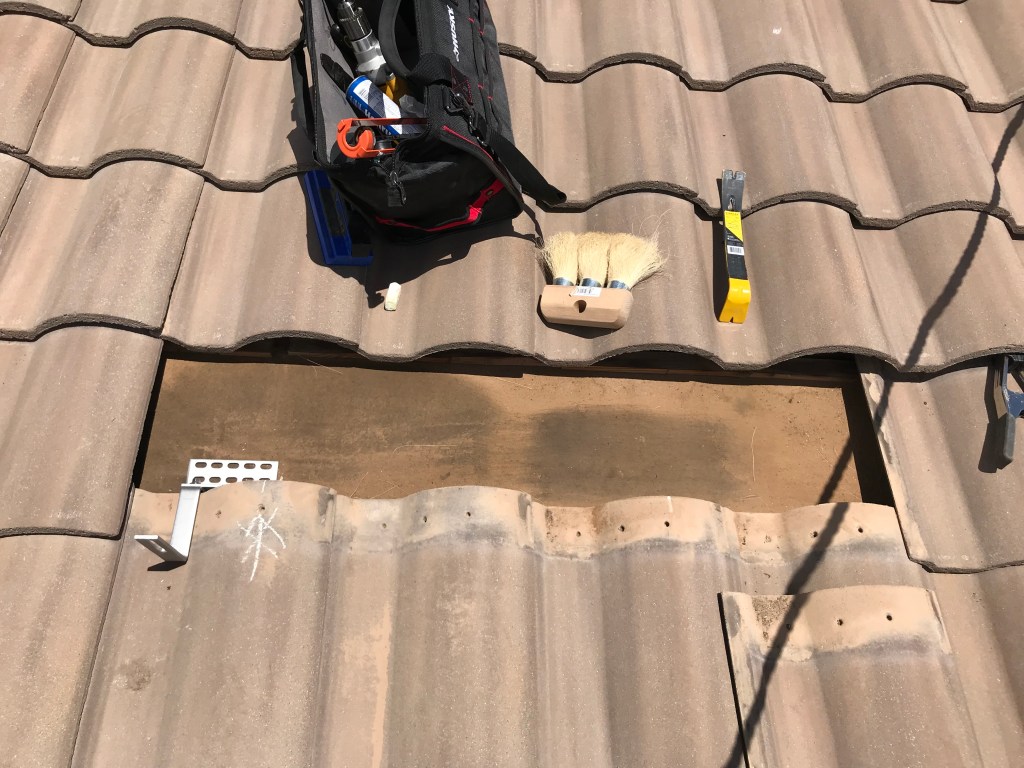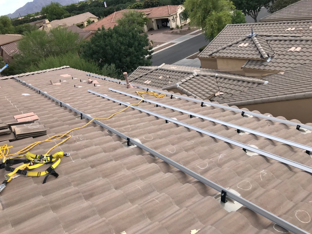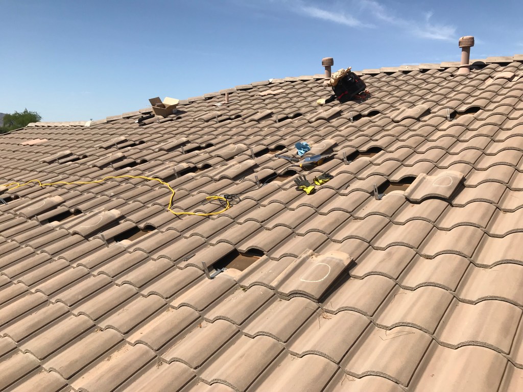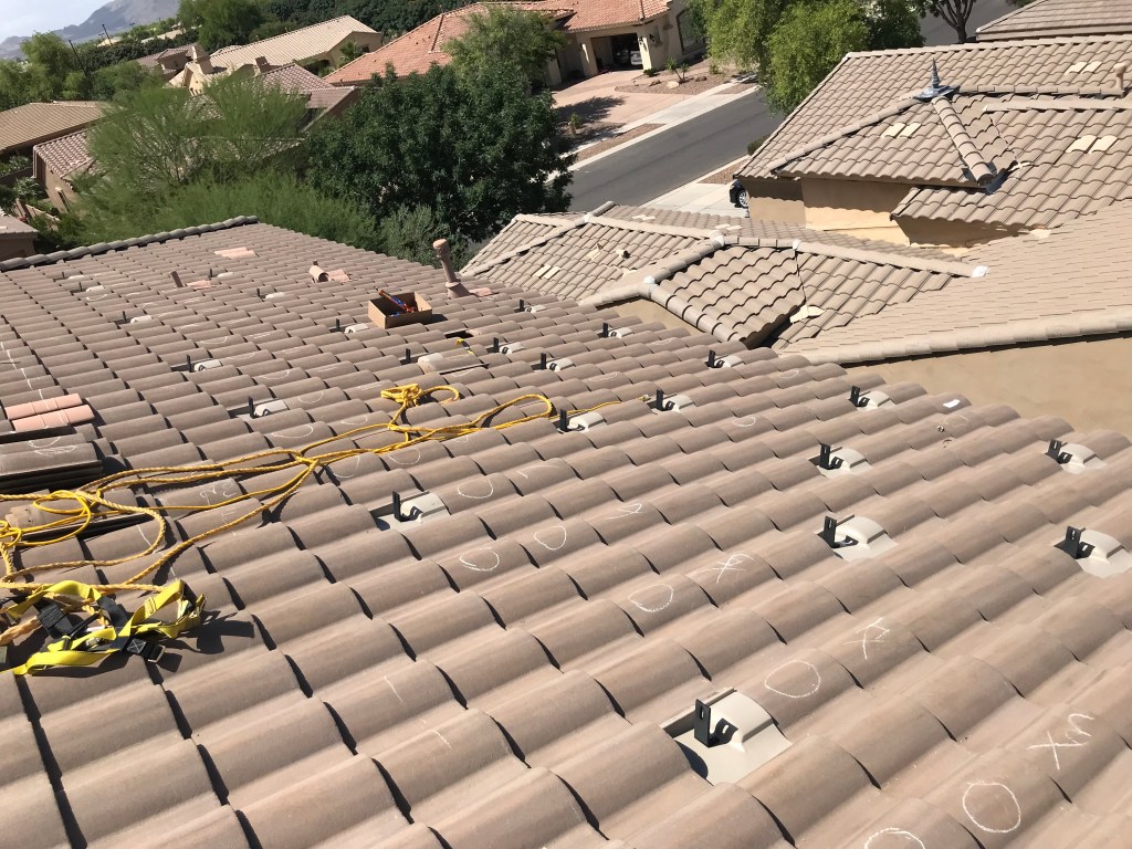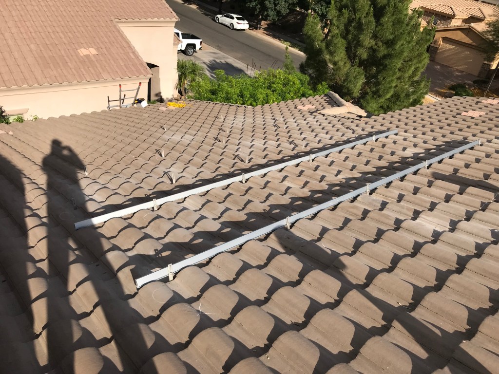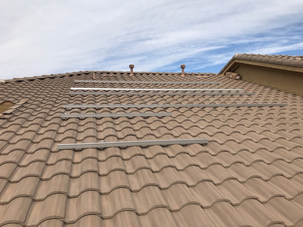 The actual install process took me a little over a week. I planned on working on it in the morning and then return to work (I work from home) during the afternoons when it got to hot to be on the roof anyways. That way I only had to take half-days off of work to allow for the install. I did take one full day off during that first install week as well. I was usually up on the roof at 5-5:30am and would work until around noon, then work from noon to 4pm. I would then be back up on the roof until it got dark, around 7-8pm. Before starting this project I had never even stepped foot on a tile roof, and it scared me to death, but by the end I felt super comfortable up on the roof.