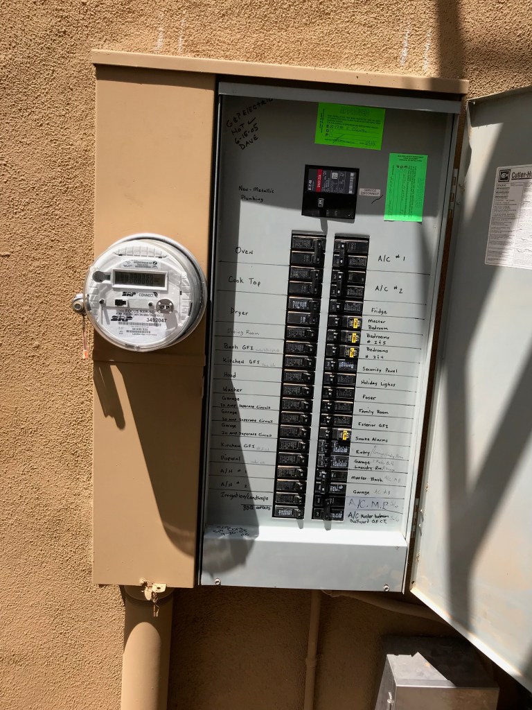 Then you need to have a city inspector come and certify that everything is to code, and then will place a sticker verifying that certification inside the panel. Then you have the utility come and re-install the meter into the main panel. This coordination took a few days to get correct, and would have been smoother had I known I needed to have the city inspect it up front.