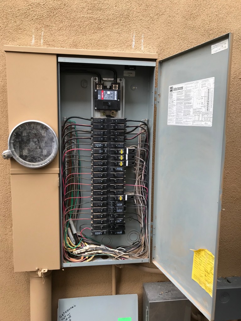 May 20 (Mon) – Meter pulled, new 175amp main breaker installed, meter replaced